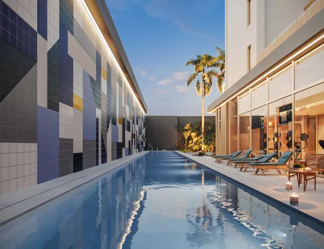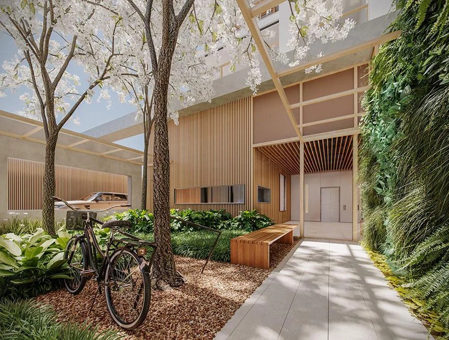 A localização do terreno, ao lado da Av. Faria Lima, no Itaim Bibi, inspirou a Sequóia e a Yuny Incorporadora a criarem um projeto exclusivo e com arquitetura assinada pelo escritório Perkins & Will. O projeto consiste em 1 torre com 4 subsolos para estacionamentos, térreo, 23 pavimentos tipos com 46 apartamentos, duplex inferior e superior, ático e cobertura.