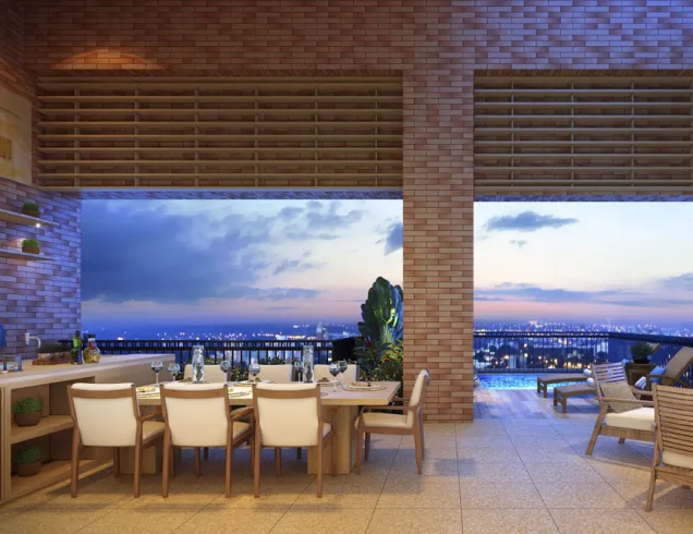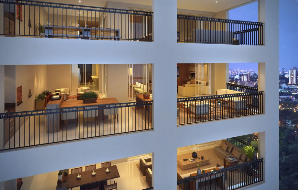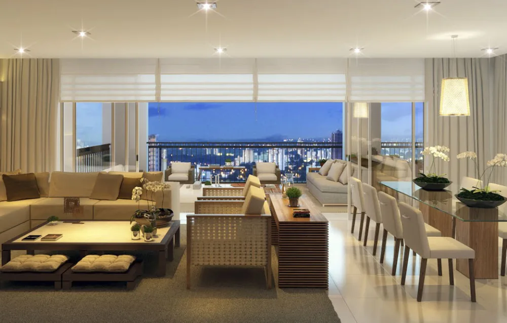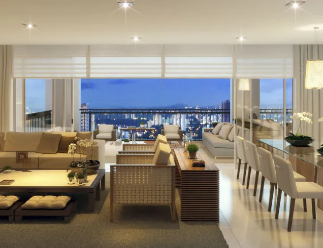 Os amplos apartamentos com 4 suítes, todos voltados para face norte, permitem explorar a iluminação natural através do amplo terraço integrado gourmet à área social.
